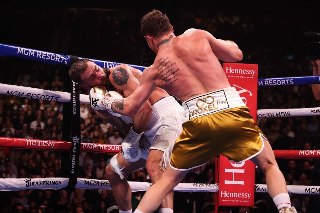 Por los títulos mundiales de peso súper mediano de la FIB, OMB, AMB y CMB, Saúl “Canelo” Álvarez (57-1-2, 39 KOs) se convirtió en el campeón indiscutible con un sensacional nocaut del invicto Caleb Plant (21-1, 12 KOs) en la undécima ronda. Plant salió con un jab en el primer asalto. Canelo estaba dando vueltas alrededor del ring y recolectando datos. Canelo eventualmente comenzaría a soltar sus manos y no aterrizaría demasiado limpio.