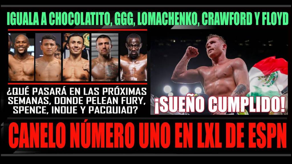 ¿Qué significa este inédito acontecimiento? ¿Hasta qué punto este reinado de Canelo será efímero o duradero? ¿Por qué el Ranking de ESPN es el más importante. Más importante, incluso, que el de la prestigiosa e histórica revista The Ring Magazine? ¿Cómo repercutirán en ese primer lugar los resultados de las próximas peleas de Spence, Fury, Crawford, Inoue e incluso el propio Pacquiao y que debe ocurrir con la agenda de Canelo para lograr mantenerse en el primer lugar? ¿Dependerá de pelea CONTRA Caleb Plant o no?