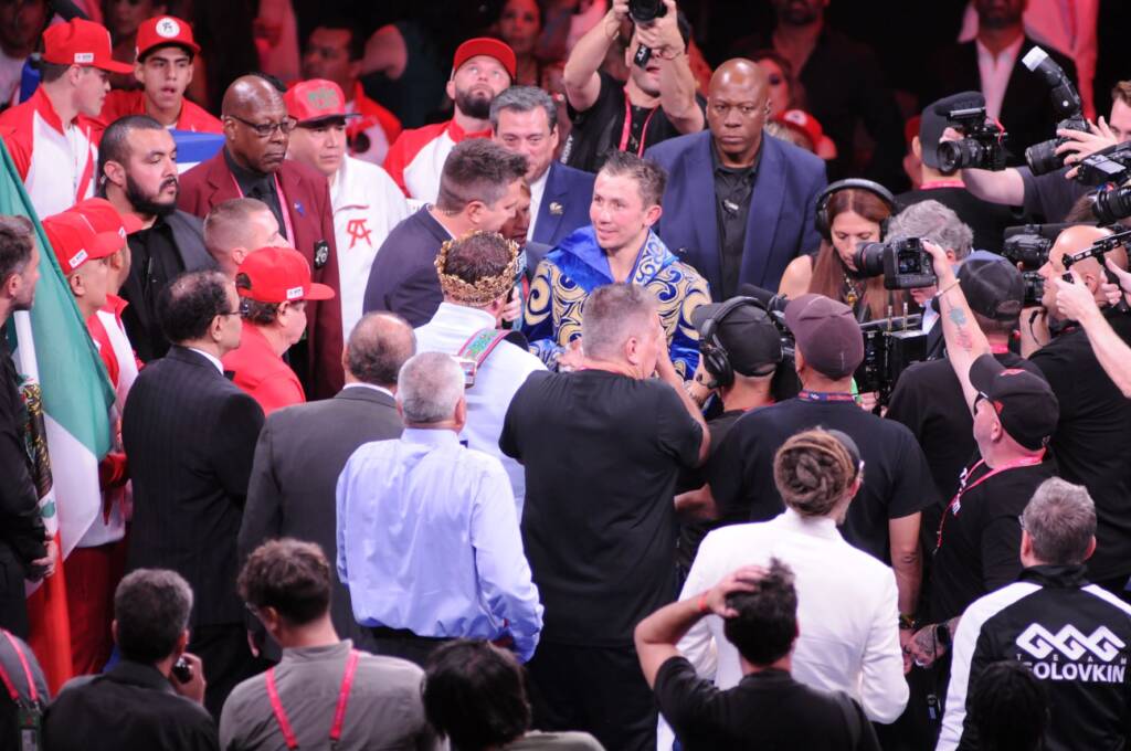 Cabe aclarar que GGG se mostro tenso durante los últimos tres días en marcha a la pelea y eludía dar entrevistas al respecto de los pronósticos, en el pesaje se encogió de hombros y dijo que no tenía nada que decir y en vísperas de subir al ring no permitió las cámaras de televisión en su camerino, y no mostro su clásica sonrisa en camino al ring, o sea No Drama Show que por lo regular proclama para nada.
