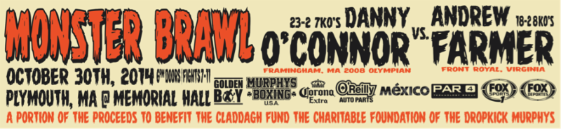 “Monster Brawl: O’Connor vs. Farmer, es un combate a 10 asaltos en peso welter presentado por Golden Boy Promotions, Murphy’s Boxing U.S.A. y Back East Promotions, y es patrocinado por Corona, O’Reilly Auto Parts, México – Live It To Believe It!, Brennan’s Smoke Shop y Par 4 Technology Group. Las puertas del Plymouth Memorial Hall se abrirán a las 6:00 p.m. ET y la primera pelea comenzará a las 7:00 p.m. ET. La transmisión de FOX Sports 1 y FOX Deportes iniciará