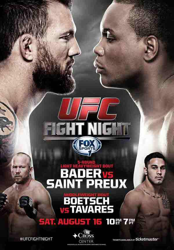 Este sábado, en el UFC Fight Night Bader vs Saint Preux, tenemos varias peleas interesantes, las cuales nos traen nombres, experiencia, variedad y mucha calidad dentro del octágono de Bangor, Maine, lugar que recibe la primera cartelera de un mes de agosto que viene lleno de expectativas y acción para los fans del UFC.