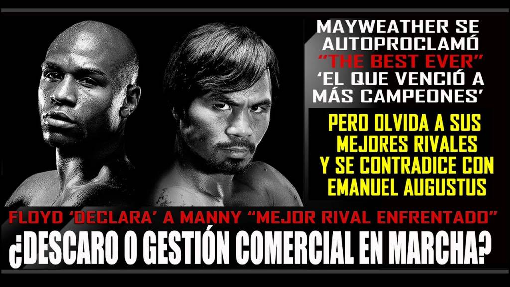 Hace pocos días, Floyd Mayweather formuló una declaración a un conocido podcast de boxeo, donde, además de fundamentar su auto-proclamación de ‘El mejor por siempre’, marcando aquello de que ‘ningún otro ha vencido a tantos campeones mundiales como el en cincuenta peleas ni nadie ha logrado recaudar 650 millones de dólares en apenas dos peleas’, increíblemente describió a Manny Pacquiao como el mejor rival que ha enfrentado.