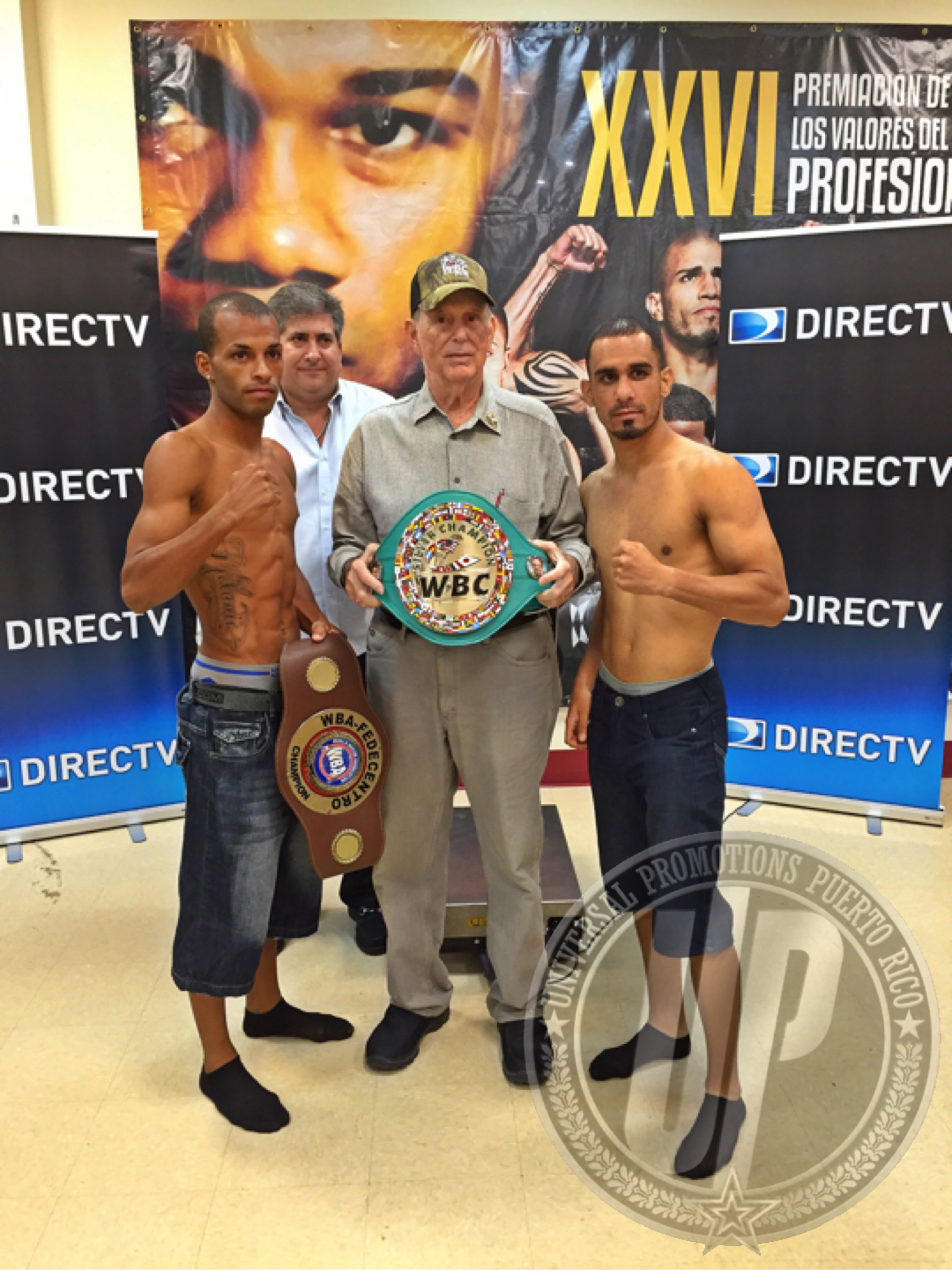 San Juan, PUERTO RICO – En la mañana de hoy, 11 de septiembre 2015 en la Comisión de Boxeo, Parque Santurce, la empresa Universal Promotions junto a DIRECTV, llevaron a cabo el pre-pesaje de la próxima cartelera de la serie “DIRECTV Boxing Nights”. Evento que tomará lugar el próximo viernes, 18 de septiembre de 2015 en la Cancha Juan Viera en el Municipio de Las Piedras. Cartelera que consta de 10 combates, donde en la batalla estelar se debatirá el título de la CMB y AMB.