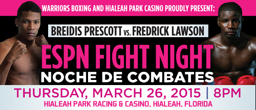 Leon Margules of Warriors Boxing, co-promoters of the event with Hialeah Park, confirms that the card will feature a ten-round welterweight affair between Breidis “El Khanqueror” Prescott (27-6, 20 KOs) of Colombia and Fredrick “General Okunka” Lawson (23-0, 20 KOs) of Ghana.