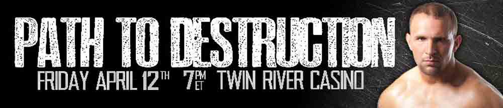 Tickets for “Path To Destruction” are $36.00, $56.00, $101.00 and $126.00 and can be purchased by calling CES at 401.724.2253/2254, online at www.cesmma.com or www.twinriver.com, at the Players Club booth at Twin River, or through any TicketMaster location. Doors open 6 p.m. with the first bout scheduled for 7.