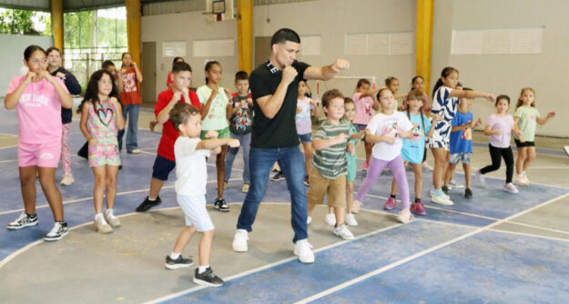 San Sebastián, PUERTO RICO — En un esfuerzo por promover la salud y la actividad física entre los niños, el boxeador José “Chiquiro” Martínez, contendiente al campeonato mundial de Las Marías, visitó junto a la Fundación El Ángel de Miguel Cotto la escuela elemental Ramón María Torres en San Sebastián. Esta visita forma parte del cierre del campamento del exitoso programa “Forma + Salud” de la fundación, cuyo principal objetivo es educar sobre la importancia de la actividad física y la prevención de la obesidad infantil.