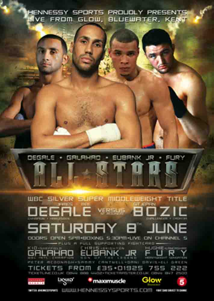 The Hennessy Sports show, live on Channel 5 in the UK from 9.30pm and on Wealth TV in the US, features WBC Silver super-middleweight champion James DeGale defending his title against Croatian fighter Stjepan Bozic.