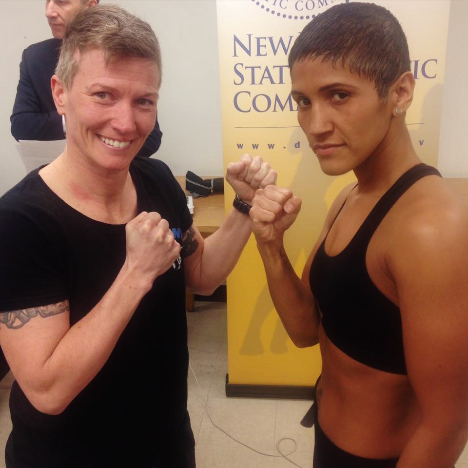 La dos veces campeona mundial Cindy ‘Checkmate’ Serrano ( 24-5-2, 10 KO ) – derecha- de Carolina, Puerto Rico derrotó por decisión unánime a la ex contendora mundial, Renata Domsodi ( 13-9, 6 KO ) -izquierda- de Hungría en un duelo celebrado en el B.B. Kings Blues Club & Grill en Manhattan, Nueva York.