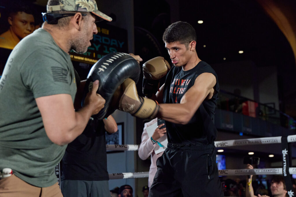 El entrenamiento también incluyó a los boxeadores que competirán en la alineación de tres peleas preliminares previas de PBC en Prime Video que precede al PPV. El miércoles entraron al ring el ex campeón mundial Gary Russell Jr., quien se enfrentará a Hugo Castañeda a 10 asaltos, el contendiente invicto de peso supergallo David “Rey” Picasso, quien se enfrentará al contendiente japonés Kyonosuke Kameda, y el ex campeón mundial Mark “Magnifico” Magsayo, quien luchará contra Jorge Mata en la atracción de apertura a las 5:30 p.m. ET/2:30 p.m. PT.