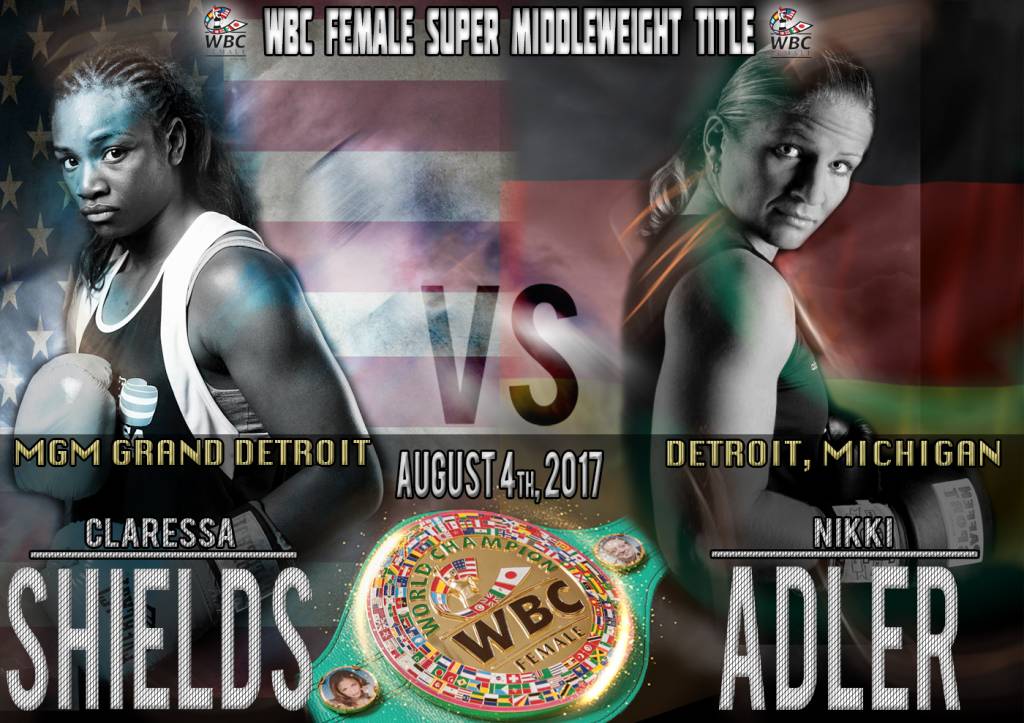 Shields (3-0, 1 KO), de Flint, Michigan, es considerada la mejor boxeadora amateur en los Estados Unidos, es también la primer púgil de este país en conquistar dos medallas de oro consecutivas en los Juegos Olímpicos. La retadora de 22 años tendrá su cuarta pelea profesional contra la campeona invicta, Adler (16-0, 9 nocáuts), una estrella alemana que buscará defender su cinturón de las 168 libras del WBC por tercera ocasión.