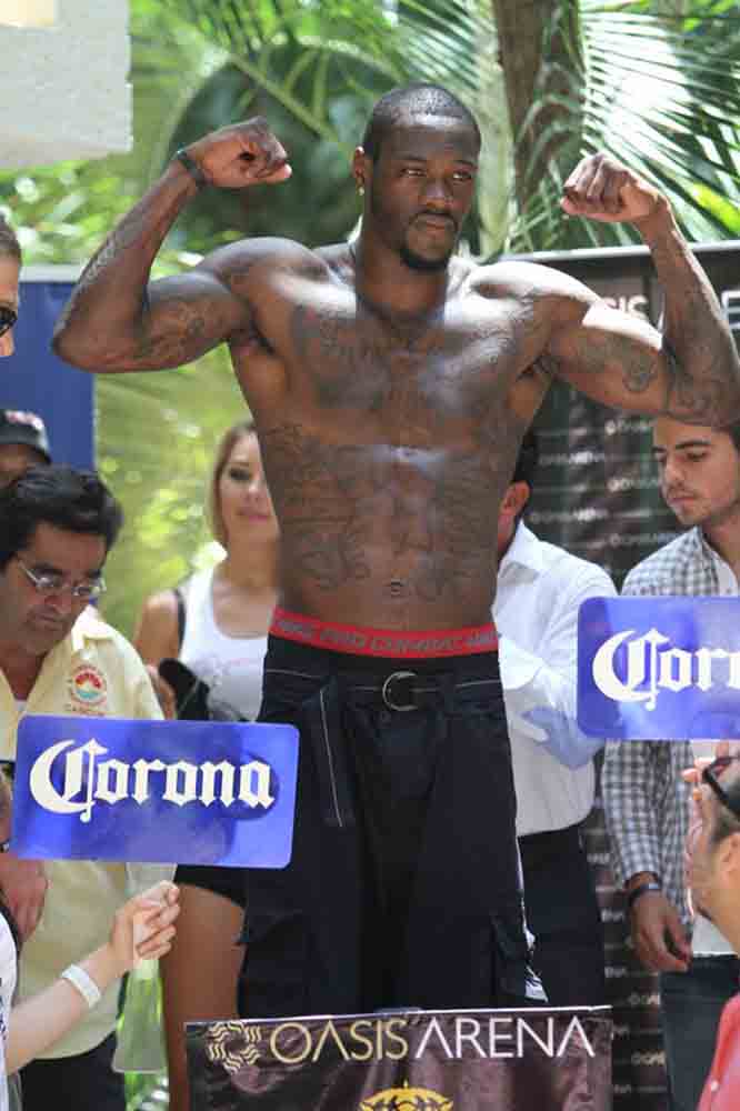 MÉXICO – El impresionante peso completo estadounidense, Deontay ‘Bombero de Bronce’ Wilder (en la foto), quien marcha con 26 victorias e igual número de nocauts en el terreno profesional; el alto clasificado en la categoría de los Plumas, el celayense Robinson “Robin” Castellanos (16-9-0, 10 KO’s), y la ex campeona mundial Minimosca por el Consejo Mundial de Boxeo (CMB), la nayarita Anabel “Avispa” Ortiz (11-3-0, 2 KO’s), fortalecen de manera importante la cartelera que se disputará este próximo sábado 19 de enero en el Centro de Convenciones de Villahermosa, Tabasco.