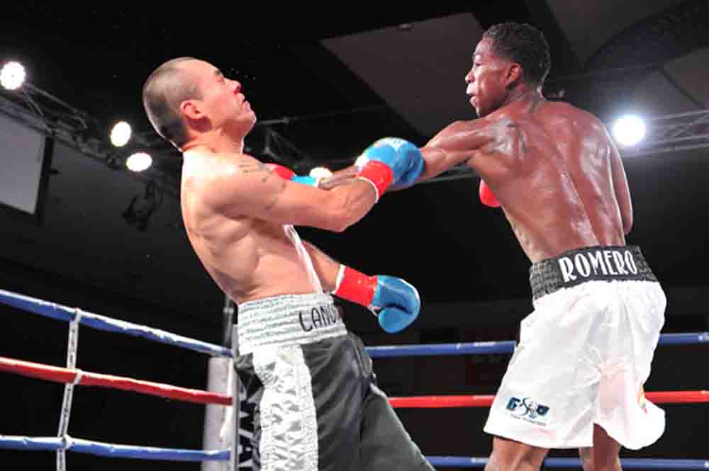 La pasada disputa del azucarero invicto en 22 triunfos, 12 antes del límite fue el 21 de septiembre venciendo por decisión unánime al duro Efrain Esquivias, reyerta en Santa Ynez, California, eliminatoria a la corona que aspira Romero traer para Colombia.
