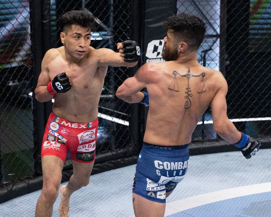 Twenty-two-year-old phenom Ismael “Kraken” Zamora (left) of Mexico City, Mexico will look for his third victory of 2022 when he headlines the Combate Global MMA show on Friday, July 29. Photo credit: Scott Hirano/Combate Global