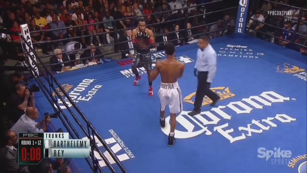 Anoche el cubano Ransés Barthelemy retuvo la faja lightweigh FIB, al ganarle un escandaloso fallo dividido al ex campeón Mickey Bey, dos jueces votaron por el ganador 117-110 y 116-111, el otro no estuvo en la pelea, tal vez jugaba Game of Trones en su celular y se la dio a Bey 117-110.