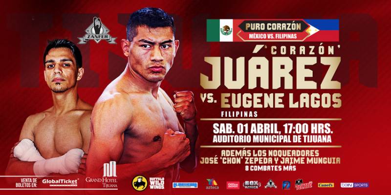 El clasificado número uno Supergallo WBO el mexicano César “Corazón” Juárez estelarizará este sábado otra gran función boxística de promociones Zanfer enfrentando al filipino Eugene “Rambo” Lagos en el Auditorio Municipal de Tijuana y Azteca 7, La Casa del Boxeo transmitirá a millones de mexicanos.
