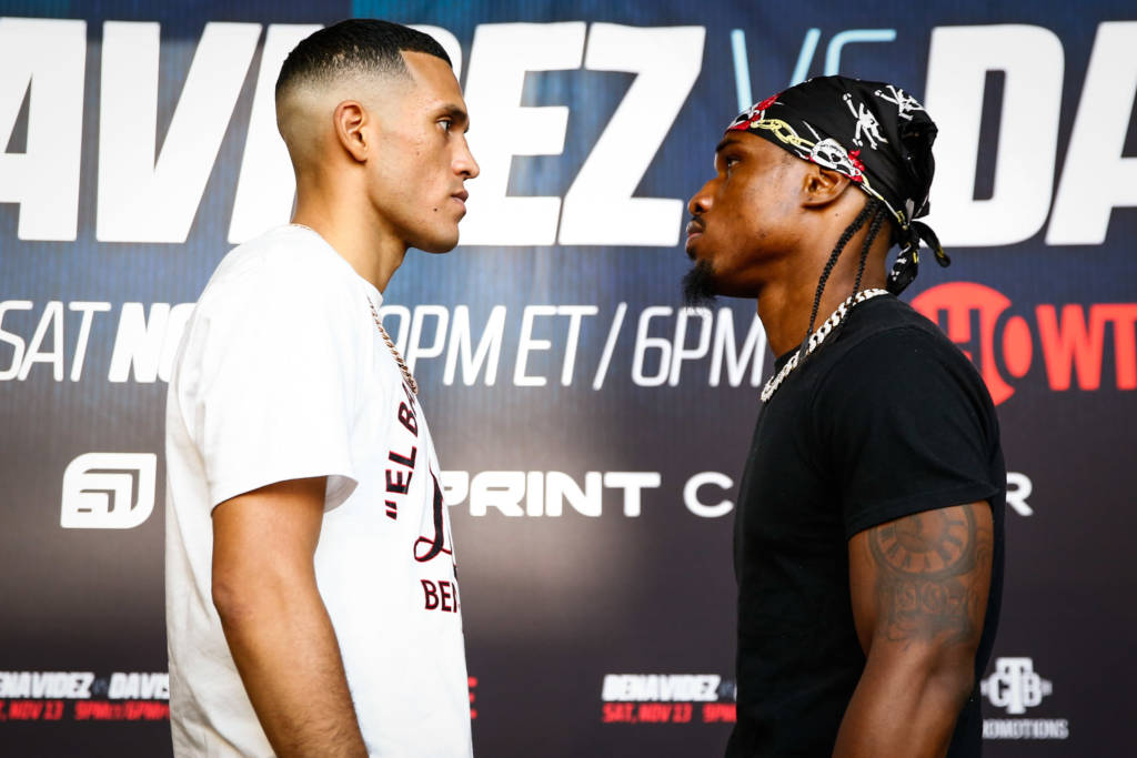 PHOENIX – 11 de noviembre, 2021 – El dos veces campeón mundial invicto David “El Bandera Roja” Benavídez y el contendiente del peso super mediano Kyrone Davis estuvieron cara a cara durante su conferencia de prensa final de este jueves en la víspera de su pelea, la cual será el evento principal este sábado, 13 de noviembre en vivo por SHOWTIME como parte de un evento de Premier Boxing Champions desde el Footprint Center de Phoenix.