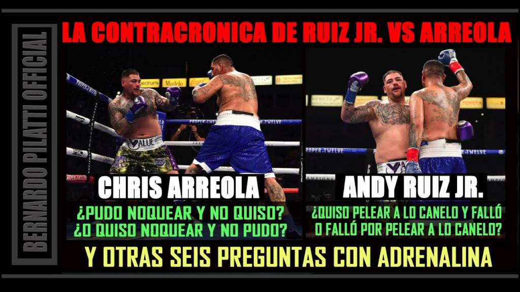 Andy Ruiz Jr. venció a Chris Arreola en una pelea que ha provocado todo tipo de reacciones entre la fanaticada, junto con preguntas de difícil respuesta. Preguntas sobre el desempeño del vencedor, sobre el desempeño del derrotado, así como el papel del entrenador de Ruiz – Eddy Reynoso – y la influencia buena o mala de Saúl ‘Canelo’ Álvarez en este ‘nuevo Ruiz’. Un Ruiz casi noqueado al mero inicio de una pelea a modo y contra un rival que en la teoría previa iba a oficiar poco menos que de un sparring para una pelea de PPV.