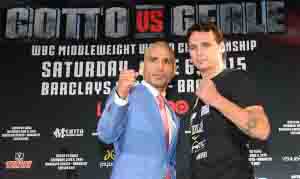 El puertorriqueño Miguel Cotto y el australiano Daniel Geale, se vieron nuevamente este martes, en la última conferencia de prensa previa al combate que sostendrán este sábado 6 de junio en Brooklyn, Nueva York, por la corona mediana del Consejo Mundial de Boxeo que posee el boricua.