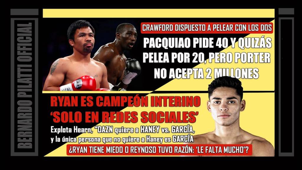 Porter, precisamente, junto a Manny Pacquiao son los dos nombres en agenda de Bob Arum para el campeón welter de la AMB. Manny pide 40 millones y Porter rechazó dos millones. En el video, les comento lo que puede suceder con Crawford a partir de su decisión de enfrentar al que sea…o mejor dicho, ‘enfrentar al que se anime’.