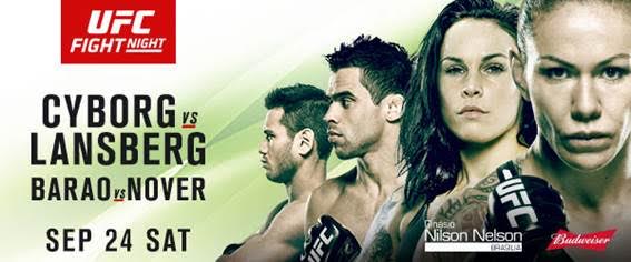 UFC FIGHT NIGHT®: CYBORG vs. LANSBERG will air live on FS1 at 10 p.m. ET/7 p.m. PT on Saturday, Sept. 24, with the prelims kicking off the evening on FS1 at 8 p.m. ET/5 p.m. PT and on UFC FIGHT PASS® at 6:30 p.m. ET/3:30 p.m. PT.