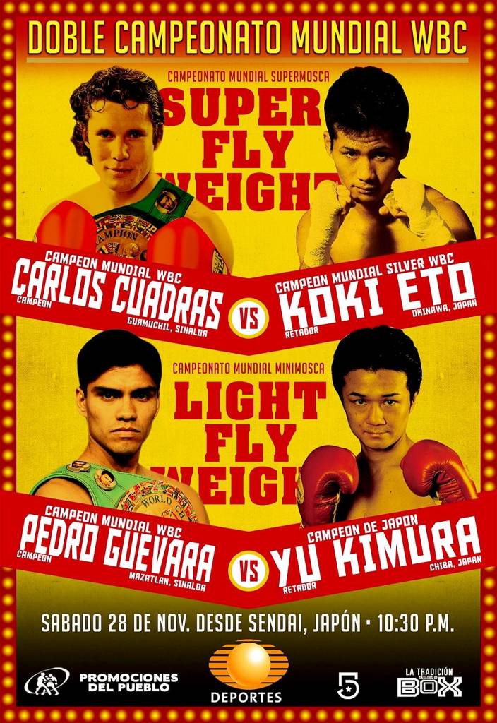 Los campeones mundiales mexicanos Pedro Guevara y Carlos “Príncipe“ Cuadras se alistan para exponer el próximo 28 de noviembre en Sendai, Japón; sus respectivos títulos mundiales del Consejo Mundial de Boxeo en un evento que será transmitido en todo México por las pantallas de Televisa Deportes.