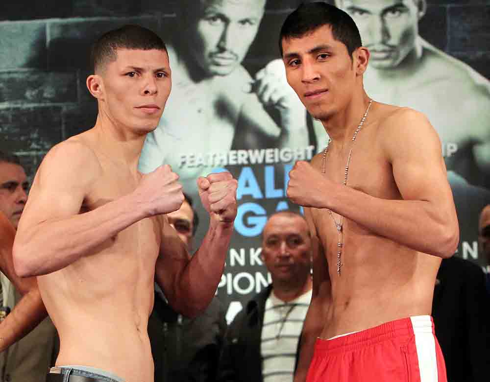 Esta noche, en una cartelera que será televisada en vivo por la telecadena H.B.O., el mexicano Juan Carlos ‘Mini’ Burgos (derecha) estará enfrentando al puertorriqueño Román ‘Rocky’ Martínez (izquierda), por el título junior ligero de la Organización Mundial de Boxeo (O.M.B.) en posesión del boricua.