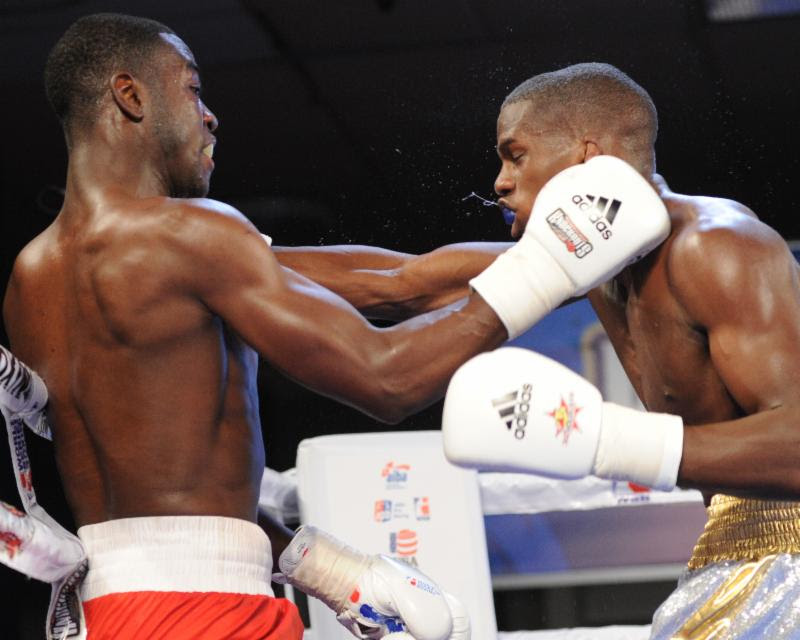 Yasner Toledo lands a left hook on Carlos Adames