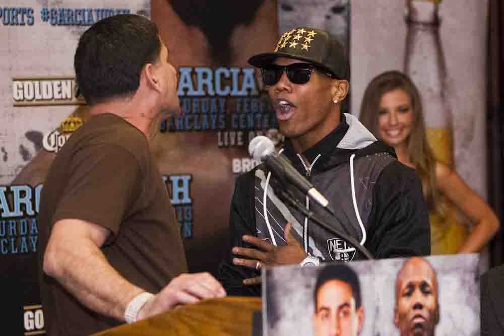 Garcia, Judah and their camps had to be separated mid-way through Saturday’s press conference at Gallagher’s Steakhouse in New York City after Garcia’s father Angel made comments while addressing the media. Judah took offense to Angel’s promise that his son, the WBA Super, WBC and Ring Magazine Super Lightweight World Champion would knock out the Brooklyn native.