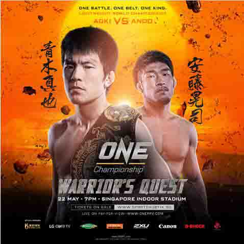 Tickets for ONE: WARRIOR’S QUEST are on sale now at http://www.sportshub.com.sg/. Ticket categories begin with the full cageside experience at S$1,488. Tickets priced at $158, $58 and $38 are also available. Prices exclude ticketing fee.