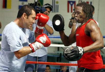 Desde el Archivo de BoxeoMundial… Oscar de la Hoya entrenando con Floyd Mayweather Sr. en Puerto Rico para su pelea con Ricardo Mayorga