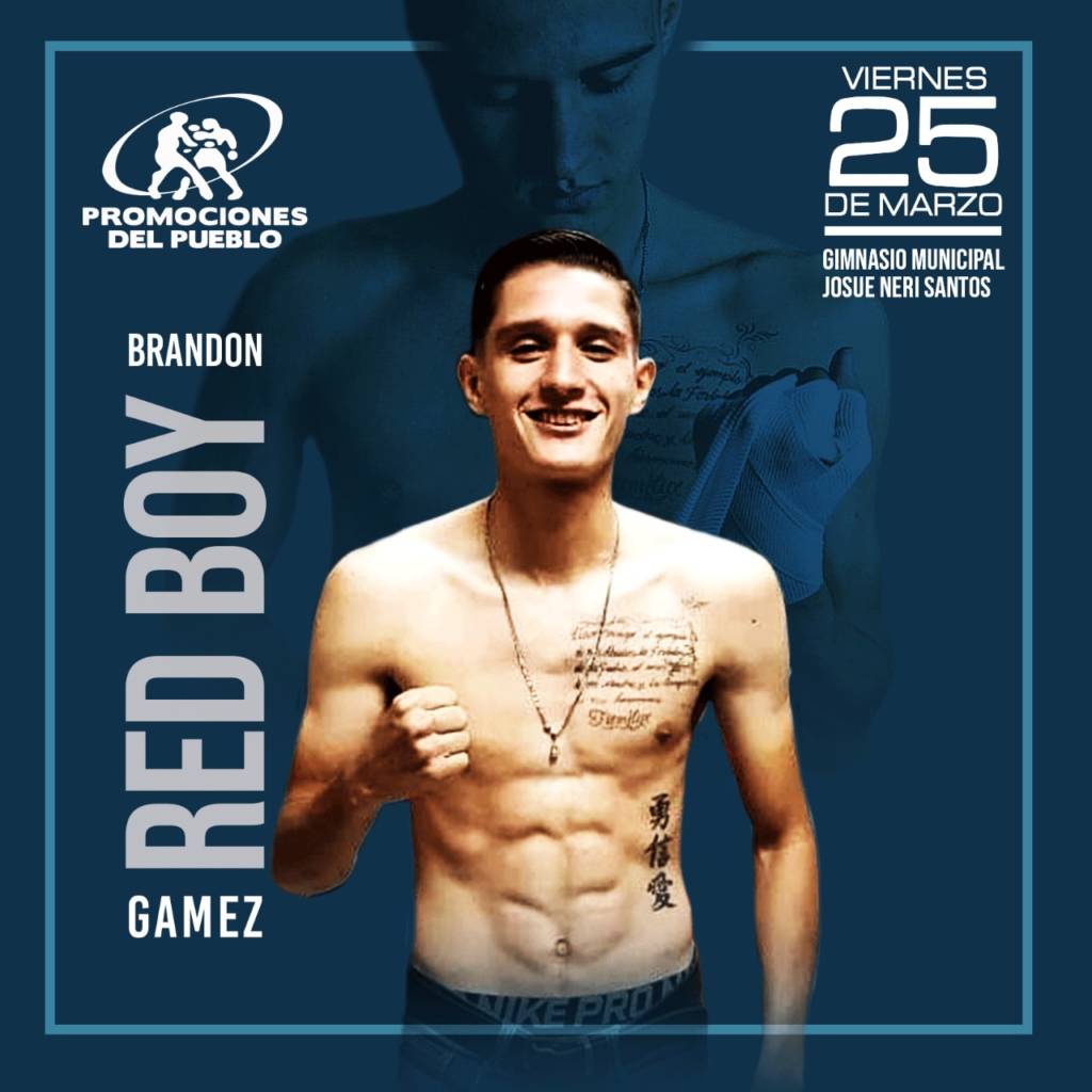 El mochitense Brandon ‘Red Boy’ Gámez, con una marca perfecta en 12 combates profesionales, en los que registra 10 contundentes nocauts; formará parte del respaldo de la papeleta del viernes 25 de marzo que encabeza el duelo de noqueadores entre el fronterizo Bryan ‘El Niño Maravilla’ Flores y el peligroso noqueador argentino Néstor ‘CH’ Maidana.