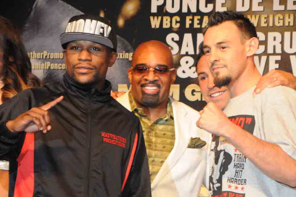 Después de que ambos combatientes posaron para la foto cara a cara, casi se armaba la trifulca con Floyd Mayweather padre y Rubén Guerrero pero gente de ambos bandos evito que el asunto llegara a mayores que a simples palabras. Oscar dijo que esta pelea no era pelea de los padres, sino de los hijos.