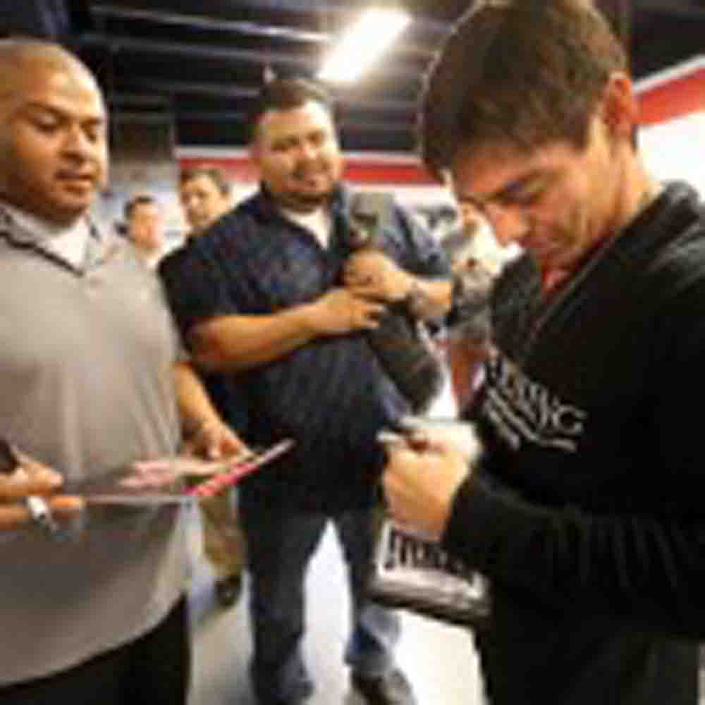 Despues de los entrenamientos los boxeadores se vieron en el Hotel sede y se saludaron cordialmente y hablaron sobre la pelea de pasado sabado en Las Vegas entre sus paisanos Manny Pacquiao y Juan Manuel Marquez.