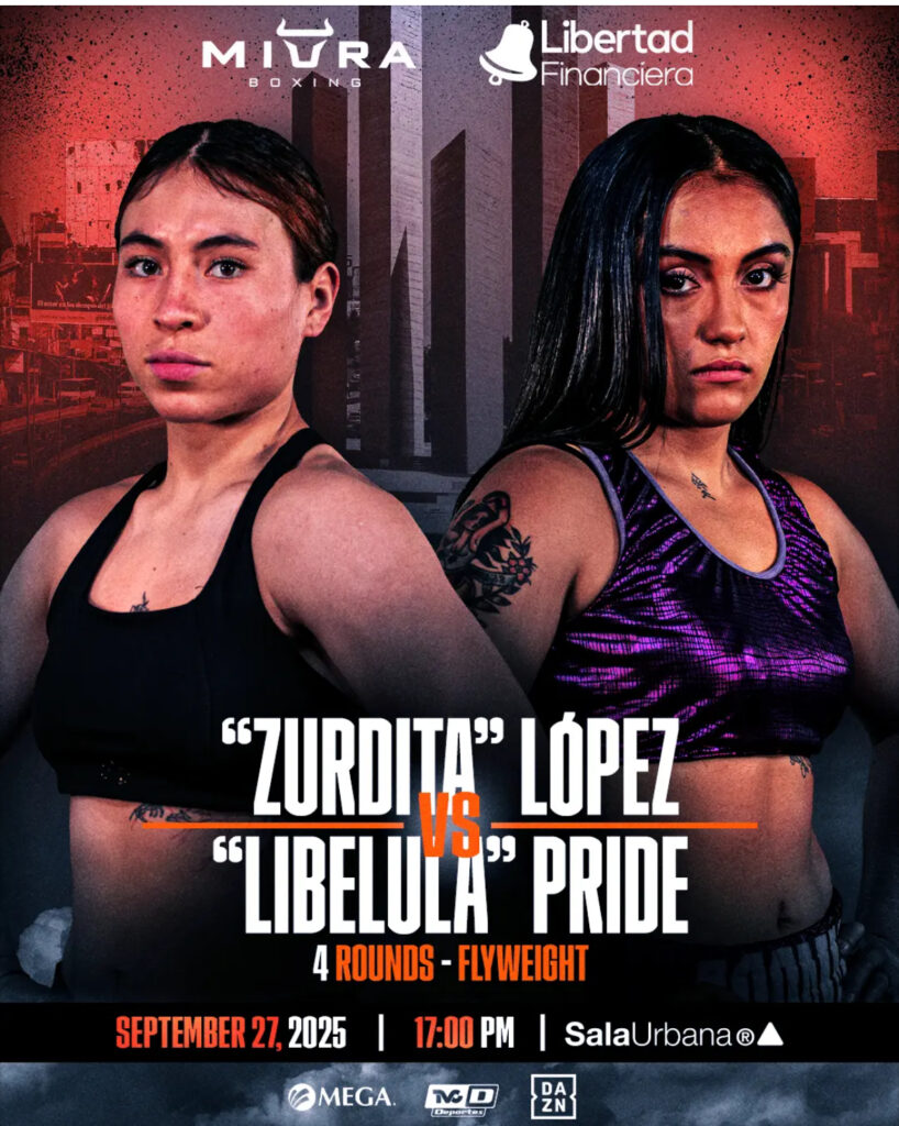 En plan ascendente Sharon “Zurdita” López y Iamdra “Libélula” Priede se medirán en un atractivo combate que promete poner al rojo vivo este sábado en el centro de espectáculos Sala Urbana de Naucalpan, Estado de México, que ofrece Miura Boxing con el apoyo de Libertad Financiera y Mega, podrá ser visto a través de la señal de TVC Deportes en México y por DAZN al resto del mundo.