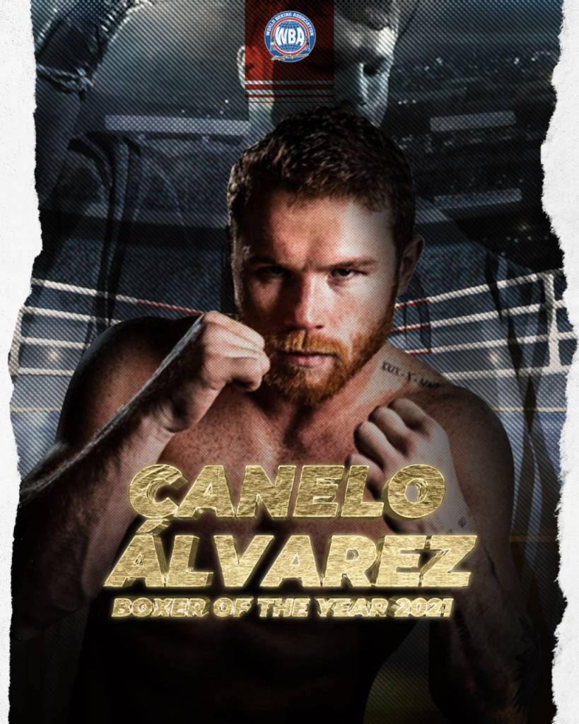 Canelo Álvarez fue nombrado boxeador del año 2021 por la Asociación Mundial de Boxeo (AMB)tras haberse convertido en el campeón indiscutido de las 168 libras y continuar como el número uno libra por libra del deporte.