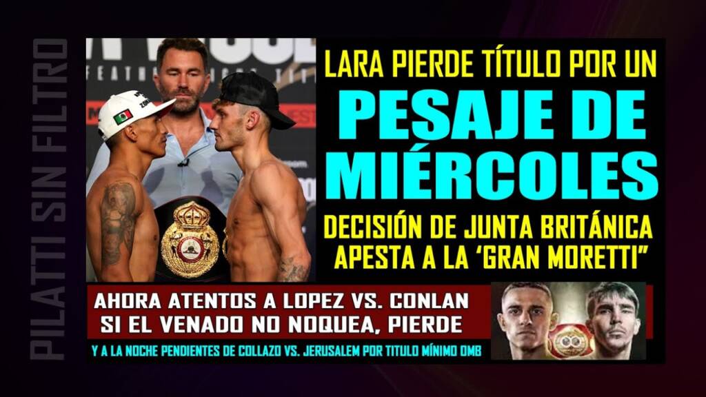El boxeo la hizo con Weeks, después la hizo con Moretti y ahora parece que la hizo con la Junta Británica que inventó un prepesaje de miércoles para Lara vs. Wood y como el Bronco (obviamente) no estaba en peso reglamentario, ‘le prohibió bajar al peso divisional para la pelea del viernes alegando un tema de salud. O sea, este viernes el mexicano tuvo que pasarse del peso y de paso ser acusado de ‘no dar el peso’.