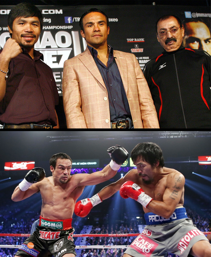 Más que calificado para hablar del tema, “Nacho” exclamó: “Creo que ganará Floyd Mayweather, pero mi corazón esta con Manny Pacquiao, Manny es un peleador extraordinario, uno por el cual la gente paga con gusto para ver. Floyd es extraordinario, pero su estilo defensivo no es muy atractivo en el gusto de los fans”.