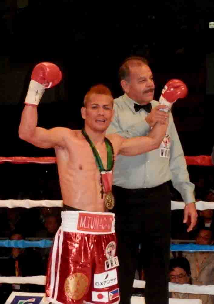KOBE, Japón – Ni el empuje ni la valentía del mexicano Christian “Italiano” Esquivel fueron suficientes para superar al filipino Malcolm “Ojo de Águila” Tunacao (en la foto), quien de manera contundente se agencio la eliminatoria final de peso gallo del Consejo Mundial de Boxeo, al noquear al mexicano en siete episodios.