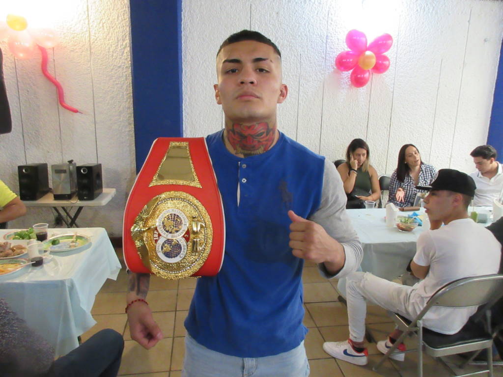 Muy orgulloso el “Conejo” Díaz lució su cetro mundial juvenil de la IBF, sabe que ahora será un rival a vencer.