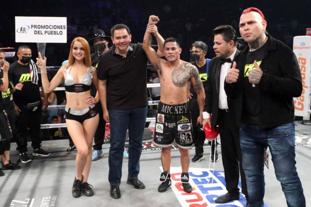 En otras combinaciones, el talentoso zurdo Ariel ‘Apache’ Moreno III se impuso por nocaut técnico en duelo de pugilistas juarenses a Emanuel Nevarez tras derivarlo en el primer giro y luego de tres trepidantes asaltos darle la puntilla obligando al referee a intervenir. El noqueador fronterizo Saúl Aguilar llegó a 4 triunfos tras noquear en un round al sonorense Abraham Gallegos en combate pactado en peso pluma.