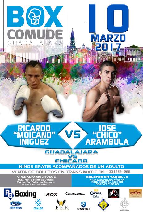 En combate pactado a seis rounds en un peso 62.000 Kilogramos, Ricardo Iñiguez, quien es poseedor de una marca profesional de seis peleas ganadas, una por nocaut, a cambio de una derrota y un empate; se medirá al invicto estadounidense José Arámbula (11-0-0, 5 KO’s), combate que promete un desenlace espectacular.