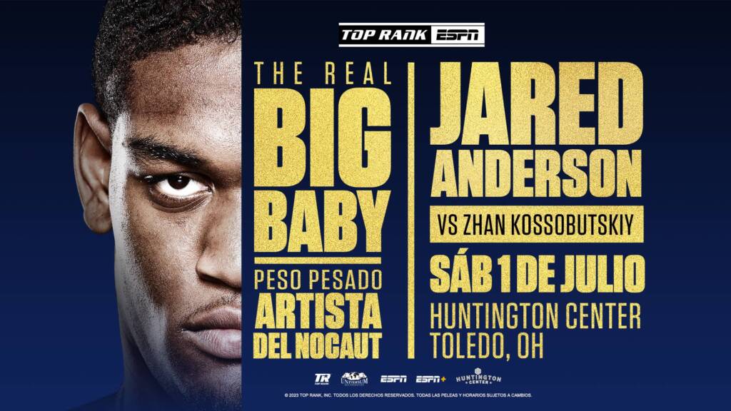 “Jared Anderson es un orgulloso nativo de Toledo, y estamos emocionados de traer Top Rank y ESPN a ‘La ciudad de Cristal’”, dijo el legendario promotor de Top Rank Bob Arum. “Desde que Jared debutó como profesional, hemos tenido la mirada puesta en Toledo como un lugar para tener eventos. Ahora es el mejor joven de peso completo en el mundo y era el momento adecuado para traer a casa al ‘The Real Big Baby.’ Zhan Kossobutskiy también es un pegador feroz, y espero una pelea llena de acción frente a una multitud llena de fanáticos en el Huntington Center”.