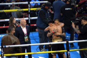 Emiliano Vargas con solo 20 años de edad y con palmarés de 14 (12 vía cloroformo) ya es considerado todo un fenómeno de la tarima brava y el 4 de mayo tuvo su primera albricia de reconocimiento al ganar el cinturón FBNA super ligero en el T-Mobile arena ante el español Juan León, quien con experiencia de 11-2 si le entró al toro por los cuernos y si puso su firma de peligro con dos que tres guantadas a la sin susto, pero El General no se anduvo por las ramas y con una zurda respaldada por la diestra lo puso en la lona. León se levantó pero al sentir un sólido gancho en el segundo asalto fue un sanseacabó. Emiliano tiene todo para ser un súper estrella, madera de la buena, carisma, labia, y sobre todo humildad y su nombre ya se corea con cariño en cualquier plaza que se presenta. Además tiene en su esquina a su padre.