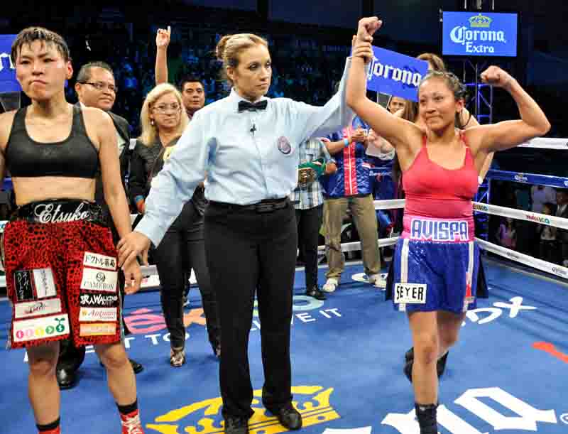 La “Avispa”, de menor estatura, se enfiló hacia la victoria con constantes cruzados de derecha que cimbraron una y otra vez la cabeza de la veloz Etsuko, quien se habría paso con su educado jab de derecha.