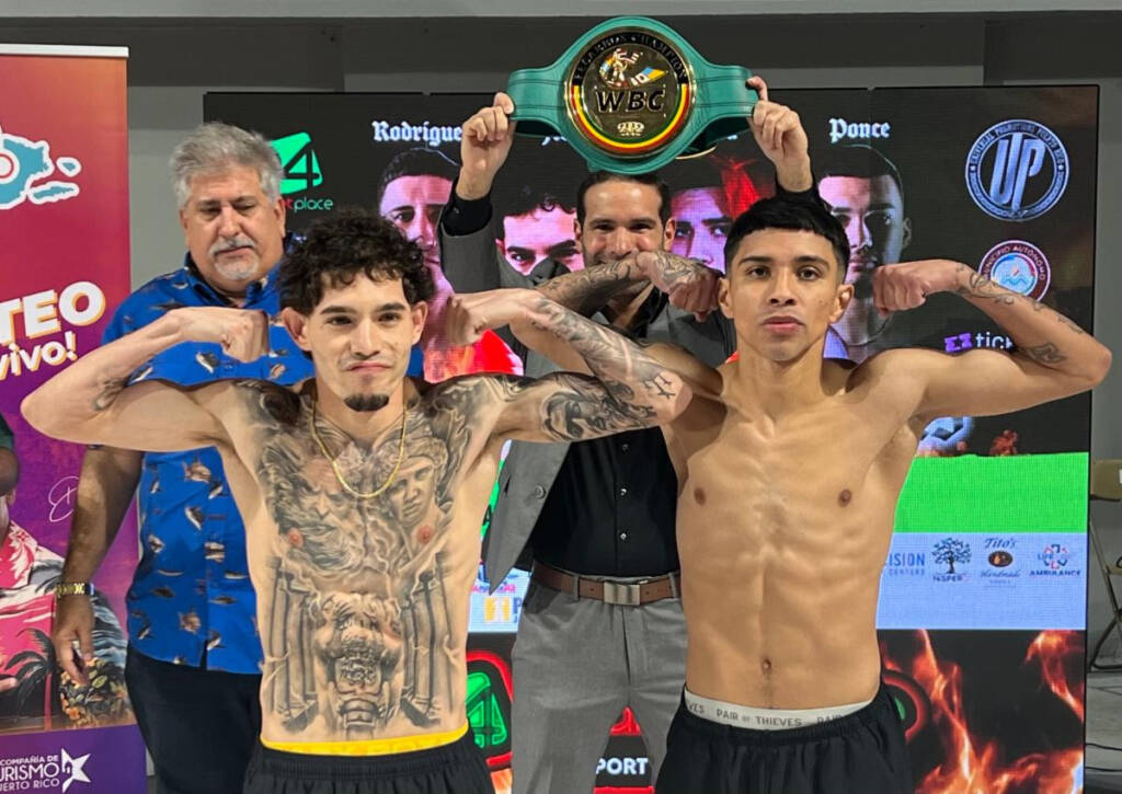 Mayagüez, PUERTO RICO – Cumplen con el peso Olajuwon “The White Monkey” Acosta (11-0, 6KO’s) y Vincent “The Beast” Avina (8-0, 7KO’s) para disputar el cinturón FECARBOX del Consejo Mundial de Boxeo en el peso súper mosca (115 libras) este sábado, 24 de agosto en el Palacio de Recreación y Deportes en Mayagüez.