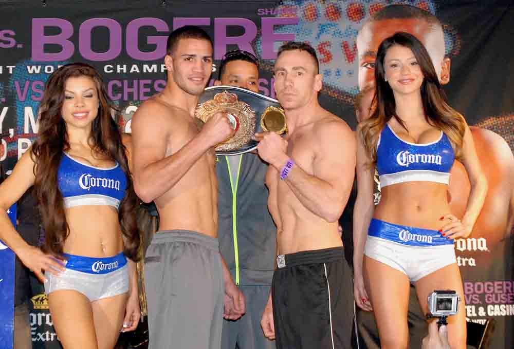 El campeón Latino y clasificado número 5 de la Organización Mundial de Boxeo (O.M.B.) en la división superwélter Jorge ‘Destroyer’ Meléndez (izquierda) detuvo la báscula en 156.00 libras y media mientras que su rival Ryan Davis (24-9-3-9 nocauts) -derecha- pesó 158.00 libras.