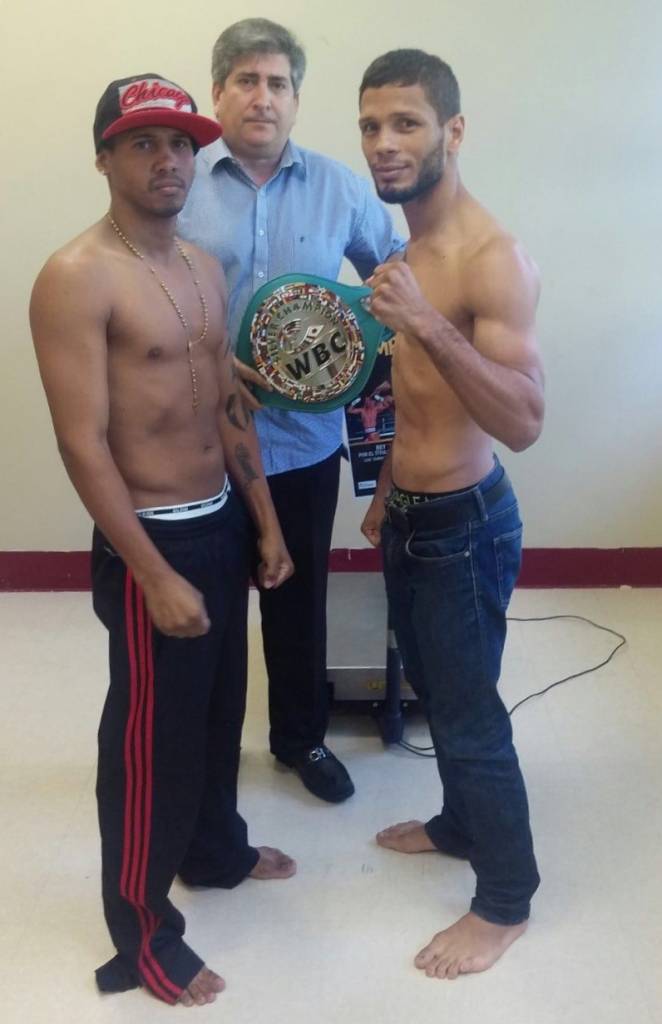 Bayamón, Puerto Rico – A un día del enfrentamiento por el título, el campeón peso ligero Rey “El Maestro” Ojeda y el retador en dicha división Andrés “Pajita” Navarro, aprobaron sin problemas el pesaje oficial. Frente un gran número de espectadores que se dieron cita en la tarde de hoy, se realizó la ceremonia de pesaje para la cartelera que forma parte de la serie “Noche de Campeones DIRECTV”. Evento que tomará lugar este próximo sábado 14 de noviembre en el Coliseo Rubén Rodríguez en Bayamón.
