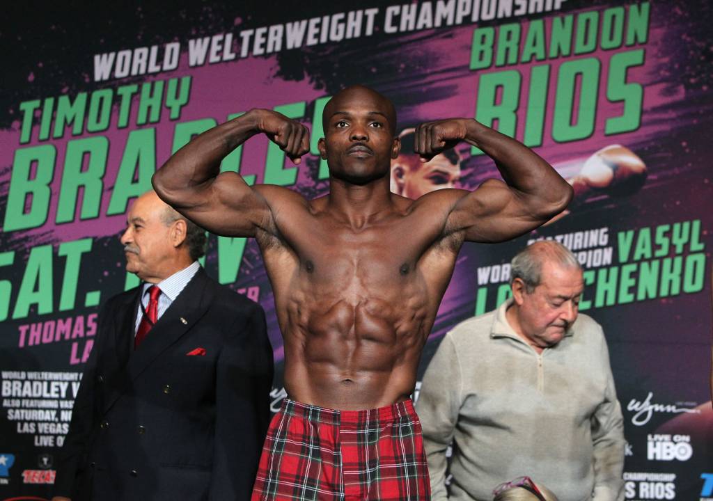Menciono esto, porque quiero discutir el caso del musculoso Tim Bradley y sus escasos 12 KOs en 34 peleas. A Bradley le ha dado por fajarse en sus últimos encuentros a pesar de la falta de poder aniquilante en sus puños. En un combate para la historia, el afro-americano con residencia en Palm Springs, California, se enfrascó en un brutal combate ante el ponchador Ruslan Provodnikov. Fue una verdadera orgia de golpes y aunque Bradley se escapó con una cerrada victoria, no pudo escaparse de recibir cantidades industriales de golpes que estuvieron a punto de noquearlo. Bradley tiene alma de ponchador sin serlo. Su nuevo entrenador, el locuaz Teddy Atlas, le ha dicho a su pupilo que regrese a sus raíces como boxeador y que en su pelea del sábado no busque el choque ante Brandon “Bam Bam” Ríos, quien sí es noqueador.