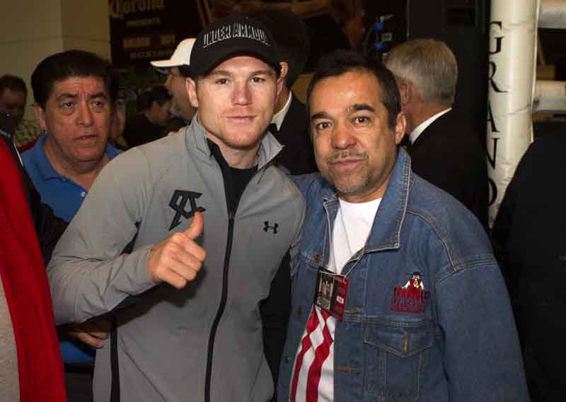 Algunos empezaron a desesperar porque Saúl Álvarez no llegaba a la hora que se suponía tenía que estar presente, pero al fin llego y primero se dedico a saludar a toda la gente presente al son de la canción “Sigo siendo el Rey” y después con micrófono en mano agradeció todo el apoyo que la gente le ha brindado y les prometió que en unos minutos estaría con todos, y si fue, porque Canelo bajo de una esquina única y exclusivamente para firmar autógrafos y posar para la foto del recuerdo con toda la gente, una faena que de plano dejo a toda la raza satisfecha y sin lugar a dudas Álvarez se echo a la bolsa otro bonche de los millones de fanáticos que ya tiene en su haber. La conferencia de prensa será televisada mañana jueves.