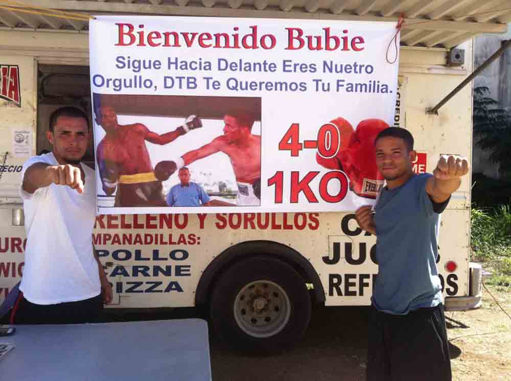 “Cuando no estoy boxeando, trabajo en una cafetería rodante que es de mi papá, al lado de ‘Mr. Special’ en la Calle Balboa. Y ahí trabajo desde las 6:00 de la mañana hasta la 1:00 de la tarde, con mi esposa”.